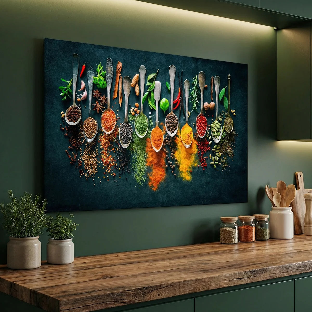 On oublie trop souvent ces pièces ! Pourtant, une cuisine avec un tableau design devient tout de suite plus chaleureuse. On peut s'amuser avec des thématiques plus pop, des couleurs vitaminées qui ouvrent l'appétit et favorisent la convivialité lors des repas de famille.