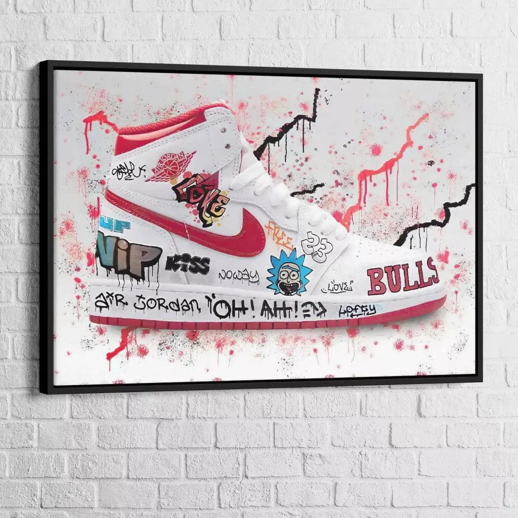 Vi er sikre på, at dette Jordan Air gadekunstmaleri perfekt kunne opfylde dine forventninger. Faktisk repræsenterer det en sko, og sidstnævnte har forskellige farver, hvilket er ret interessant. Du kan også virkelig vælge denne type maleri, hvis du ønsker at tilføje farve til dit hjem. Sidstnævnte vil trods alt passe perfekt ind i din nuværende indretning, hvilket er ret gode nyheder.