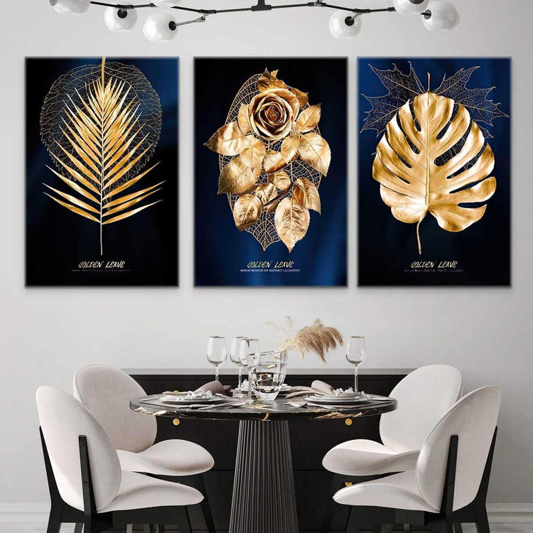 At dekorere med blade er blevet mere og mere populært i de senere år. Faktisk giver denne type dekoration dig mulighed for at integrere et mere naturligt touch i et hjem. Men dekorationer med blade har ofte en tendens til at favorisere den grønne nuance. Hvis du vil have en dekoration, der skiller sig ud, skal du vælge guldblade. Den visuelle effekt er ekstraordinær. Med dette maleri får du ikke bare ét, men tre lærreder med forskellige guldblade for at sikre originalitet.