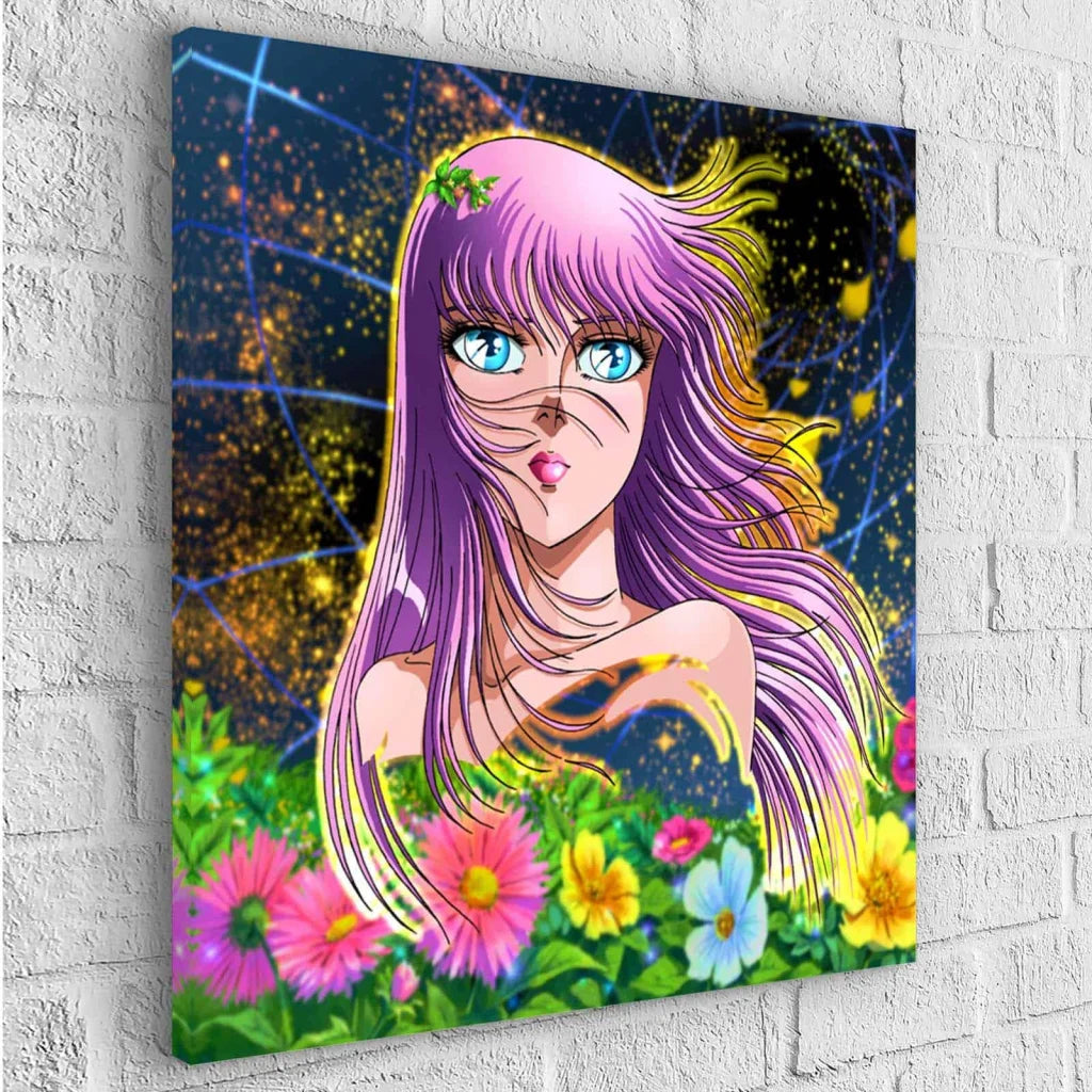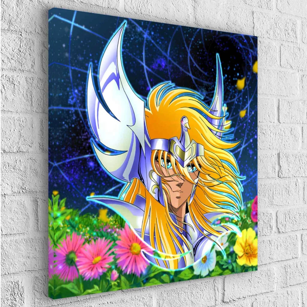 Jeder Ritter trägt seine prächtige, glänzende Rüstung und gehört zu einer von drei Kasten (Bronze, Silber oder Gold). Jeder von ihnen gehört zur engen Wache der Göttin Athene, die ihnen im Kampf gegen mächtigere Gegner zur Seite steht. Daher finden wir auf diesen großartigen Leinwänden einige der Ritter, wie etwa Seiya vom Pegasus, Shiryû vom Drachen, Hyôga vom Schwan, Shun von Andromeda und Ikki vom Phönix, allesamt bronzene Ritter, und Saori Kido, die Reinkarnation der Göttin Athene.