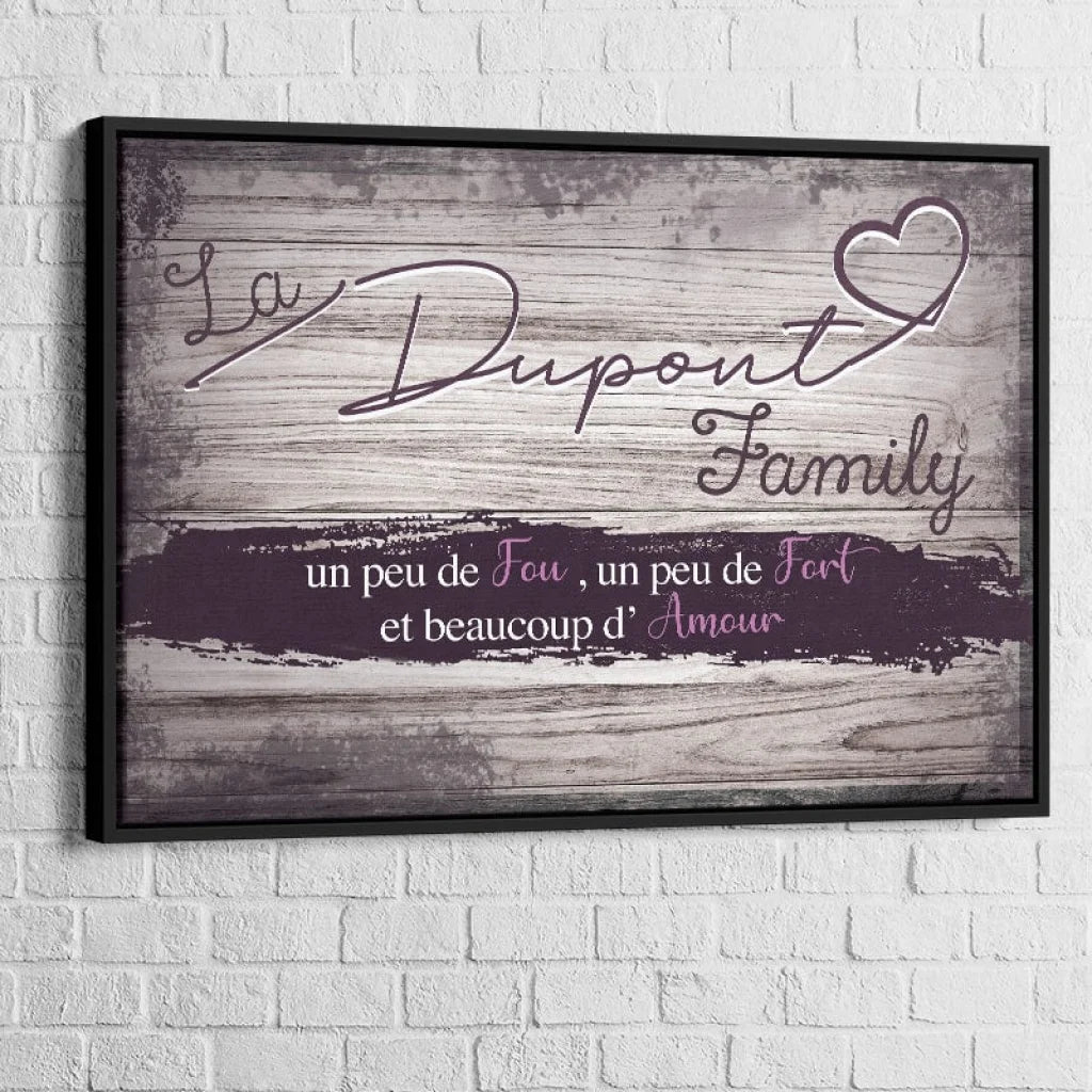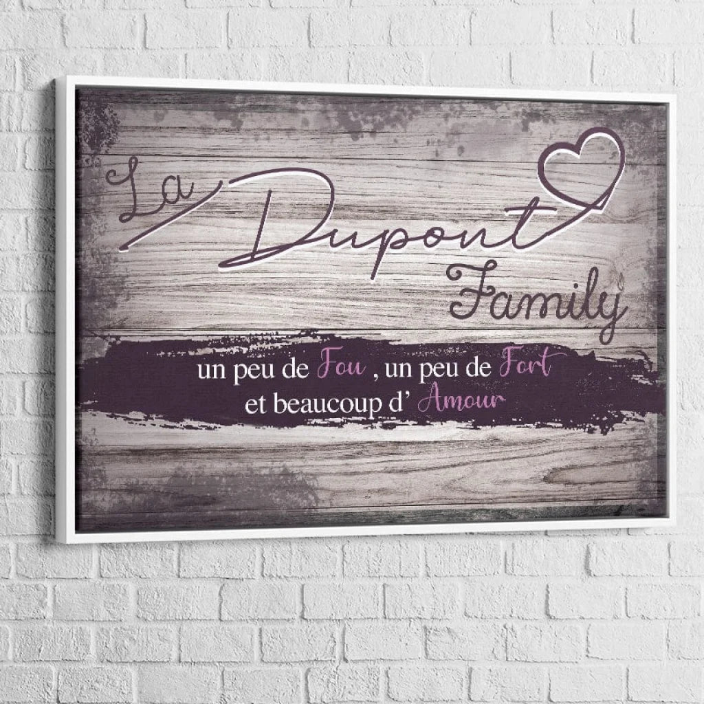 DER Personalisierter Familientisch ist viel mehr als nur Wanddekoration. Es verkörpert die Werte und den Geist Ihrer Familie, verewigt durch ein elegantes und personalisiertes Design. Sie haben die Möglichkeit, Ihren Nachnamen sowie Sätze einzugeben, die Ihren Familienkokon perfekt widerspiegeln, wie diesen: „Ein bisschen verrückt, ein bisschen stark und viel Liebe“. Dies ist eine charmante Möglichkeit, die Einzigartigkeit Ihrer Familie hervorzuheben und Ihrem Zuhause gleichzeitig eine warme Note zu verleihen.
