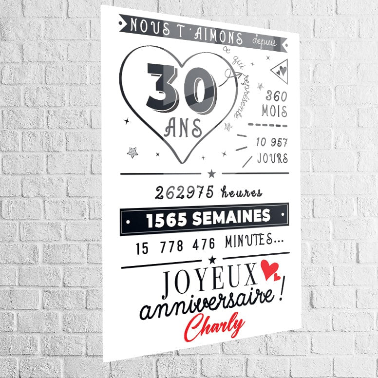 Suchen Sie ein einzigartiges und originelles Geburtstagsgeschenk für einen geliebten Menschen, ein Mädchen oder einen Jungen? Entdecken Sie unsere personalisierte Jubiläumstafel, die jedes glückliche Jahr feiert und Ihrer Wanddekoration eine einzigartige Note verleiht. Dieses Gemälde ist nicht nur ein einfaches Werk: Es zählt die Monate, Tage, Stunden und sogar Minuten des gemeinsamen Lebens und ist damit eine emotionale und bedeutungsvolle Entscheidung. Mit dem Verschenken dieses Gemäldes schenken Sie eine in die Zeit eingravierte Erinnerung, perfekt für ein bedeutendes Jubiläum wie 30 Jahre, 40 Jahre oder noch mehr.