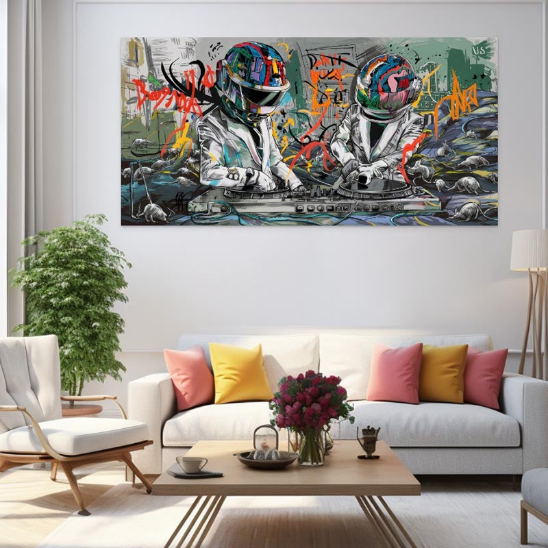 Vibrieren Sie im Rhythmus der Kunst mit dem Daft Punk Street Art-Gemälde