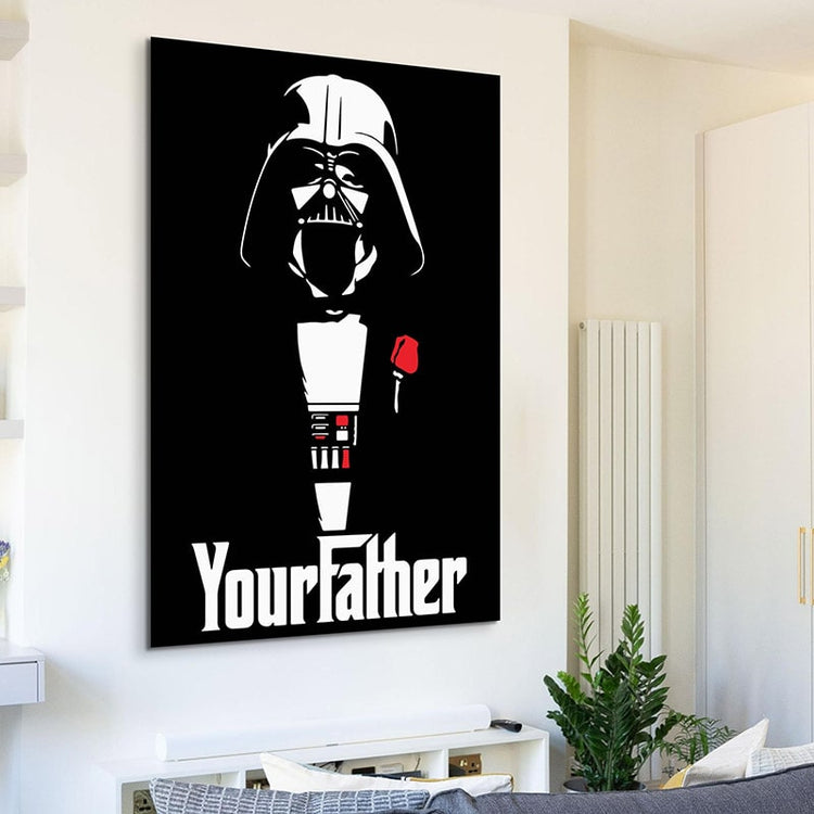 Add a touch of humor and pop culture to your decor with this "Your Father". This unique design combines two emblematic universes: Star Wars And The Godfather, for an original and striking result. Available in stretched canvas Or plexiglass, this painting is perfect for all fans of cult cinema.