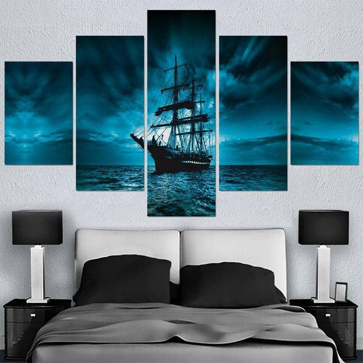 If you really want to have a perfect interior decoration, we are sure that this Pirate Ship on Blue Sea will help you achieve the desired effect. Indeed, with colors as powerful as what we can see, you will have no worries about the atmosphere of your room. So, when you look at it, you will almost want to go on a trip, which is rather good news. Also, this painting with 5 panels can find a place on a large section of wall. Indeed, you should not separate the panels, if you want the drawing to form correctly on your wall. We are sure that you will be able to find the right place.