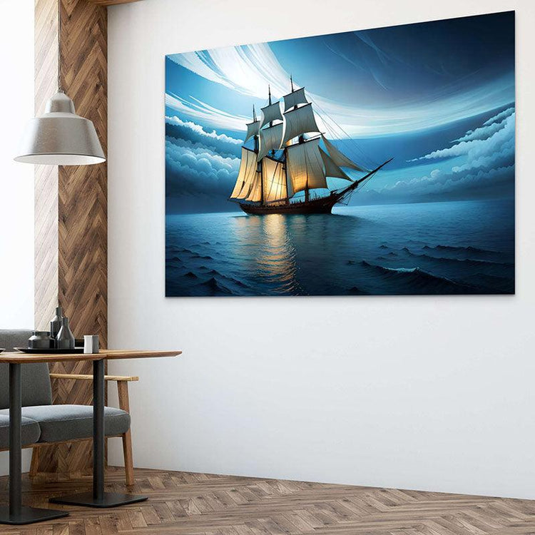 The Blue Night Sailboat Painting is more than just a painting, it is a piece of art that can transform any space. It not only adds color and ambiance, but it also gives a sense of depth and elegance to your interior. Whether you have a contemporary, classic or rustic interior, this piece of maritime art is sure to bring a touch of sophistication.