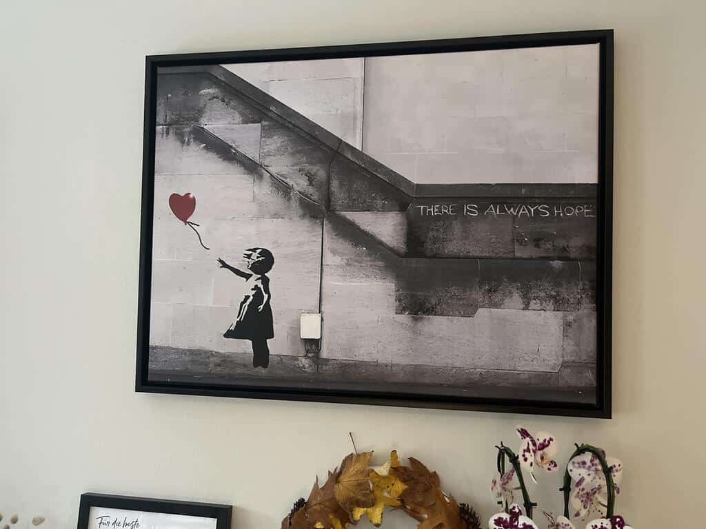 Street art is known for its raw and authentic expression, and this painting is a celebration of that aesthetic. Discover a canvas where affection and urban art intertwine to deliver a powerful and colorful message.