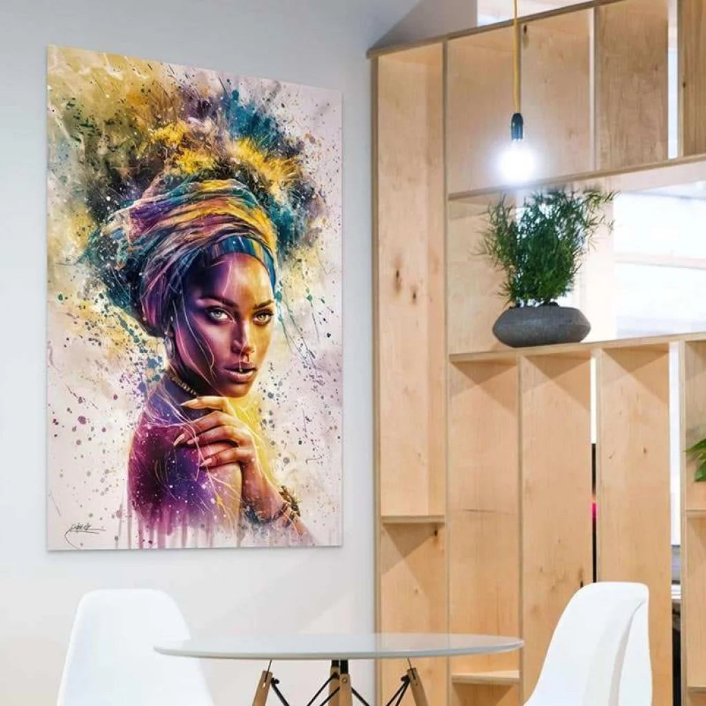 La pintura África - Celebración de la Belleza captura la esencia de la feminidad radiante, simbolizando la fuerza y el esplendor de la cultura africana. Este paño presenta a una mujer africana de mirada intensa, rodeada de un torbellino de colores que realza su presencia. Cada pincelada evoca un poderoso mensaje de estima y respeto por la belleza africana, ofreciendo una Decoración de sala de estar que enriquece cualquier espacio. Ya sea para traer un soplo de cultura o un... idea de regalo Inspiradora, esta obra hará eco del espíritu del lugar donde se exhibirá.