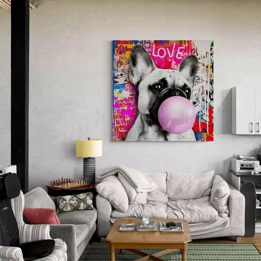 Hauska, taiteellinen, tyylikäs, omaperäinen ja suloinen, Buildog French Street Art -maalauksessa on kaikki, mikä miellyttää sisustustasi.