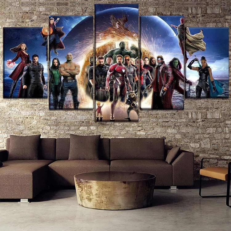 Dans la thématique de Marvel Comics, nous vous proposons des toiles rectangulaires classiques mais également des tableaux de décoration en 5 parties qui éclairent un pan de mur entier. Quelque soit la taille de votre pièce, vous trouvez dans la collection la toile adaptée.