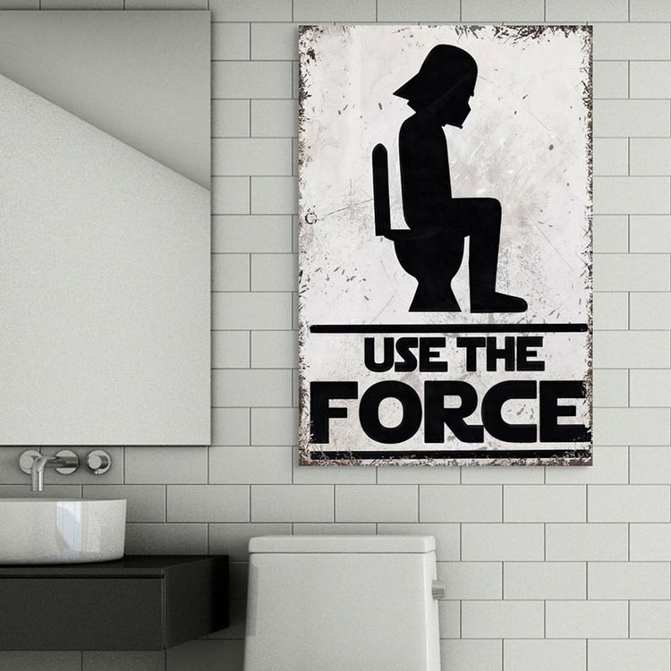 Si vous êtes fan de la saga Star Wars et que vous cherchez une touche d'humour pour décorer votre espace toilette, ce tableau "Use The Force" est fait pour vous ! Ce design unique présente un clin d'œil hilarant à Dark Vador, avec une touche décalée qui ne manquera pas de faire sourire vos invités. C'est l’accessoire déco parfait pour ceux qui recherchent une déco toilette humoristique originale et insolite.