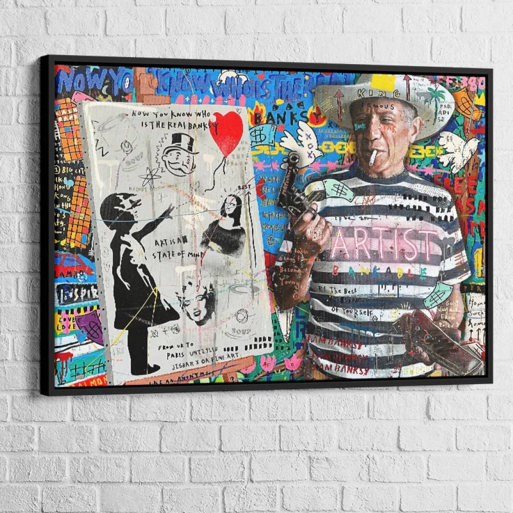 Affirmez votre amour pour l’art urbain avec le Tableau Street Art "L’Artiste Bankable", une création explosive mêlant graffiti, satire sociale, punchlines visuelles et clins d’œil à la pop culture. Inspirée de l’univers de Banksy et de l’art contemporain engagé, cette toile est une véritable déclaration murale.