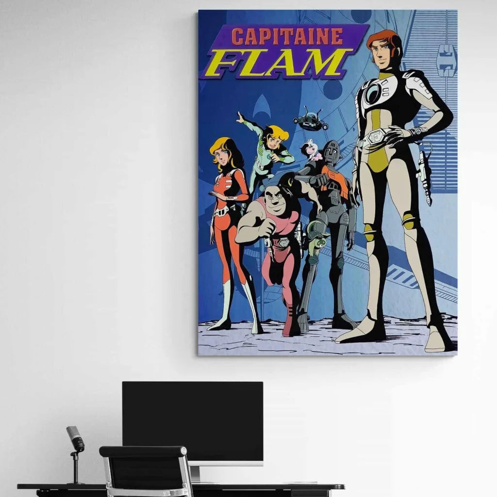 Vuoi creare un arredamento anni '80 nel tuo interno. Sei cresciuto con le serie animate di quegli anni. Questo magnifico dipinto raffigurante la serie Captain Flam sarà del tutto appropriato per la decorazione che sceglierai. Questo eroe, infatti, combatte il male a bordo del suo cyberlaboratorio, accompagnato da un robot, il professor Simon. Quindi osate creare una decorazione originale e sublime che valorizzerà i vostri interni.