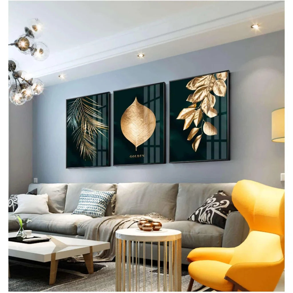 Wëllt Dir an dësem 3-Deel gëllene Blatmolerei bäissen? Net sécher op wéi engem Raum Dir se setzen kënnt? Hei sinn e puer Iddien déi Iech definitiv hëllefe sollten: