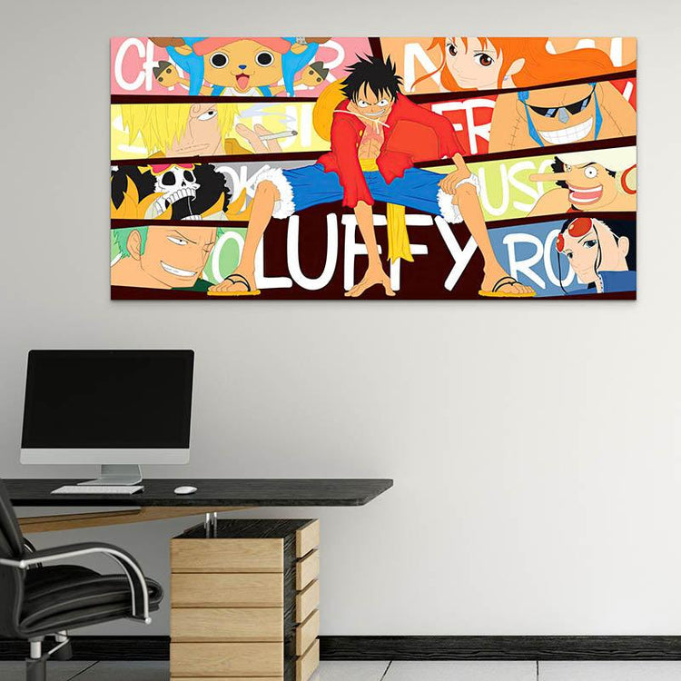 Dëst "Mr. Luffy" Molerei ass eng richteg artistesch Duerstellung vun der Legend vum Monkey D. Luffy. Am Zentrum gëtt de Luffy op eng majestéitesch Manéier duergestallt, an am Hannergrond erënnert e Mosaik vu senge Begleeder un all d'Abenteuer, déi se zesummen erlieft hunn. Et ass eng richteg Feier vum Geescht vu Kameradschaft an Entschlossenheet, déi all Kapitel vum One Piece duerchdréit.