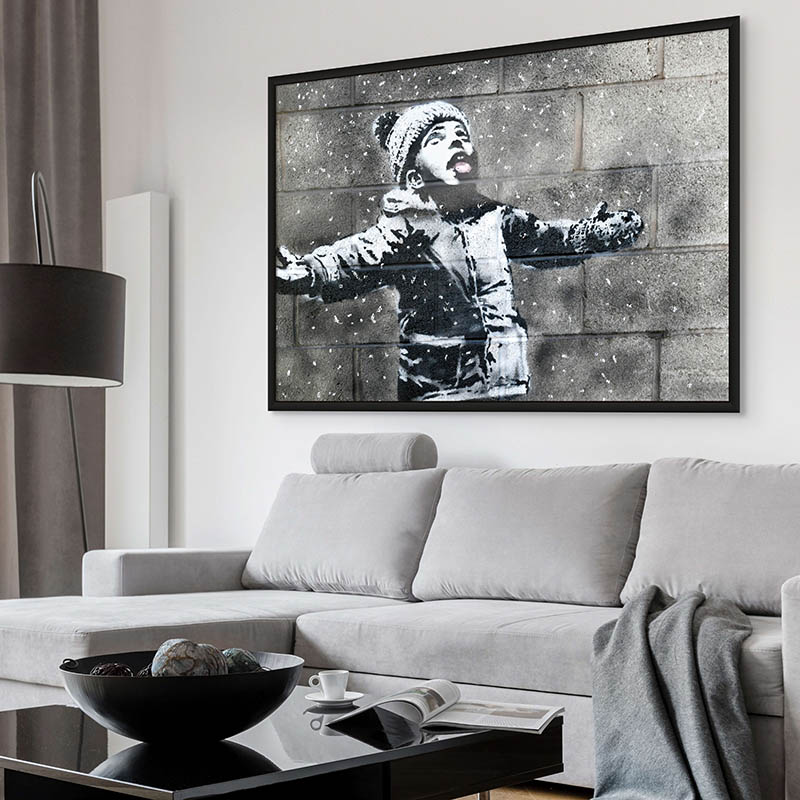 Dëst grëndlech Stéck, ugebueden an grouss Format gedréckt Leinwand, verkierpert perfekt d'Essenz vun der Strooss Konscht mat sengem visuellen Impaktstil a mächtegen ënnerierdesche Message. Ideal fir déi, déi sicht eng ze integréieren trendy Wanddekoratioun An hirem Raum bitt "Ash Boy" eng urban Ästhetik zu engem zougängleche Präispunkt, wat dem Banksy seng Konscht méi zougänglech mécht fir all Konschtliebhaber.