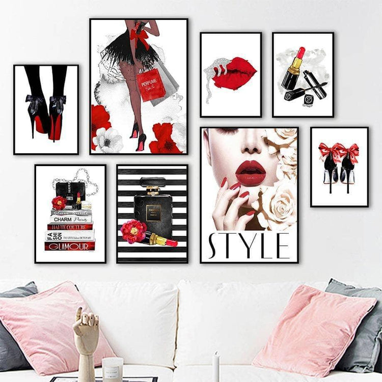 Un tableau Fashion Tendance Rouge 8 pièces : parfait pour les décorations girly !
