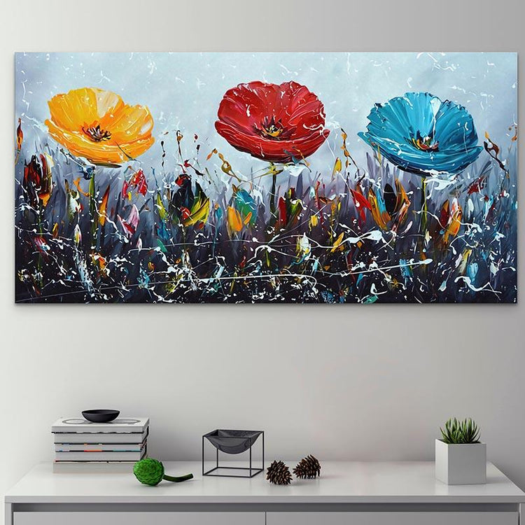 Tableau des 3 Coquelicots : Donnez vie à votre intérieur avec cette œuvre florale captivante