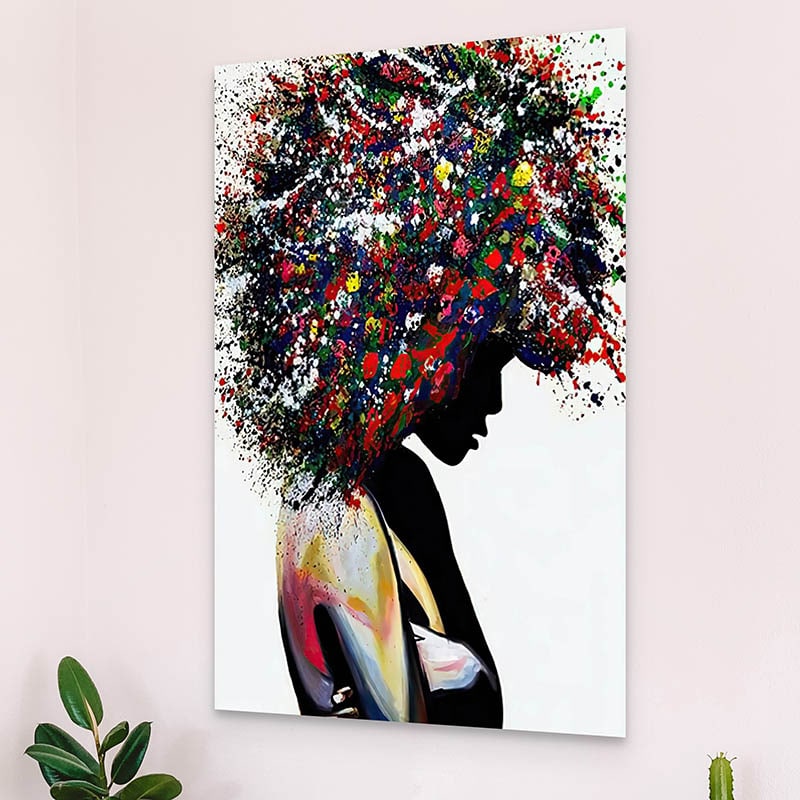 Apportez une explosion de créativité et de couleurs à votre espace avec le Tableau Street Art Silhouette en Couleur. Ce chef-d'œuvre captivant représente une silhouette féminine dont la chevelure se métamorphose en un éclatant bouquet d'expressions artistiques, fusionnant la beauté naturelle et l'énergie brute de l'art urbain.